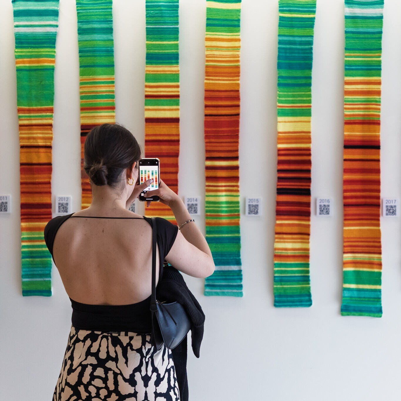 A exposição apresenta a criação de 30 cachecóis em croché, correspondentes a cada ano da série climática de Aveiro entre 1996 e 2025. Em cada peça, cada carreira representa a temperatura média diária, totalizando 365 carreiras por cachecol. O conjunto constitui uma narrativa visual do comportamento do clima ao longo de três décadas, traduzindo dados científicos numa linguagem acessível, artística e tangível.