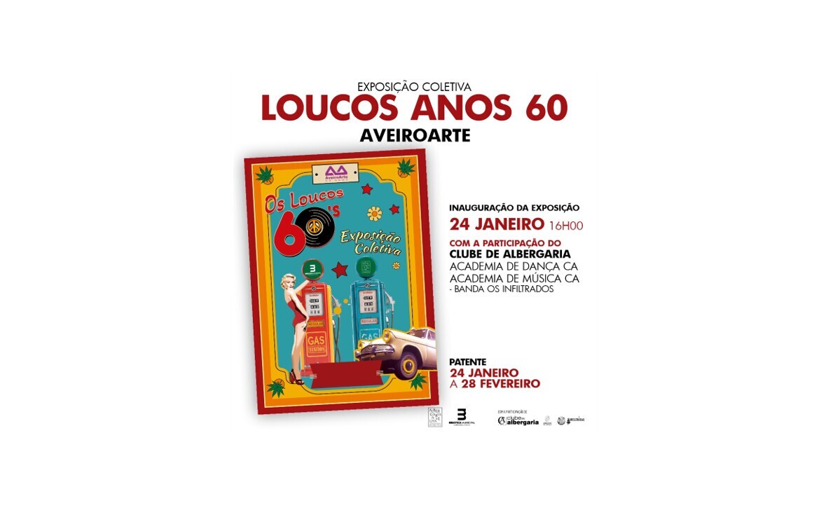 A Biblioteca Municipal de Albergaria-a-Velha inaugura no próximo sábado, pelas 16h00, a exposição coletiva “Loucos Anos 60”, do AveiroArte – Círculo Experimental dos Artistas de Aveiro. Com a curadoria de Guilhermina Pereira, a mostra reúne trabalhos de 26 artistas, que prestam homenagem a uma década de grandes convulsões políticas, sociais e culturais.