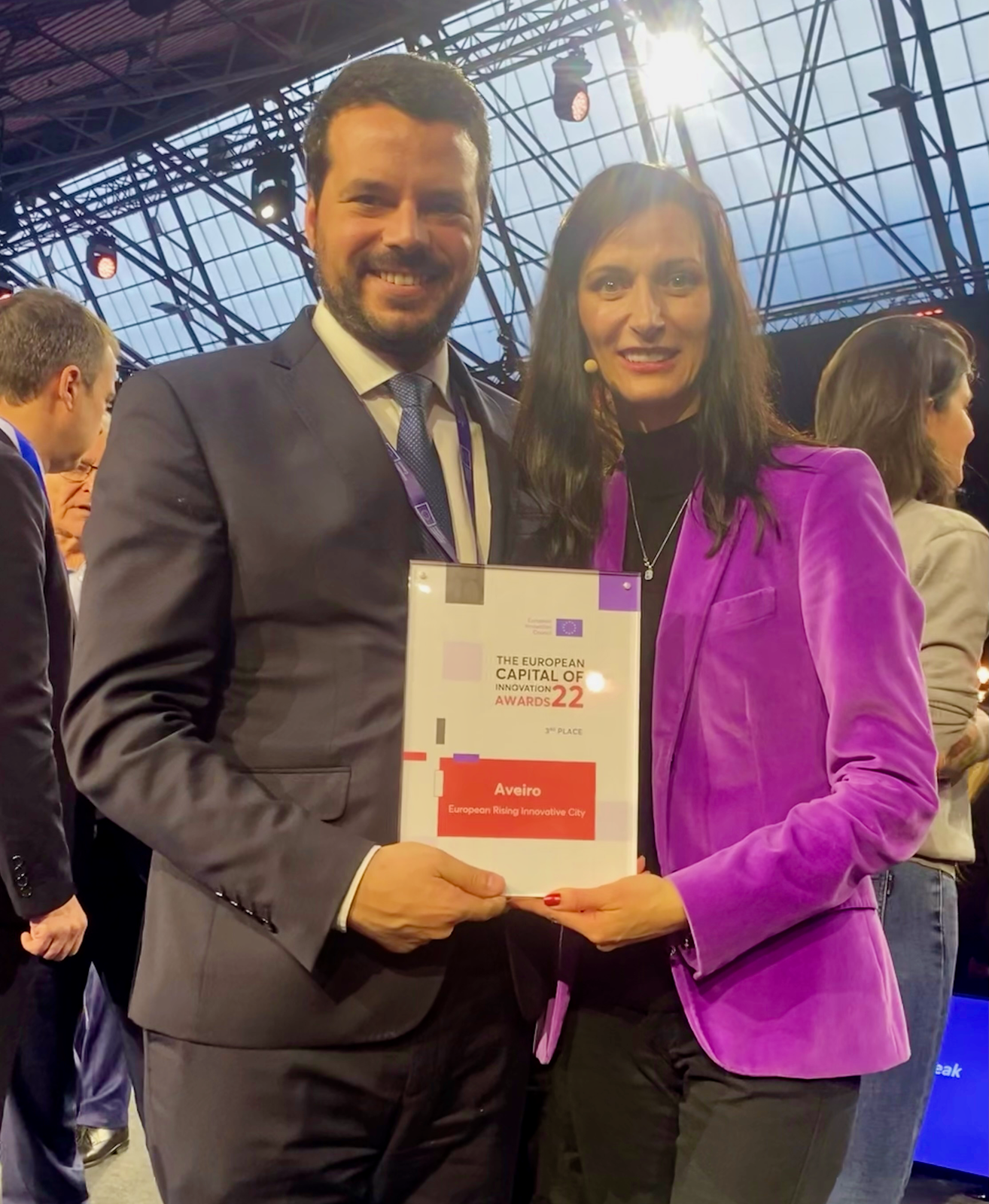 área de conteúdos (não partilhada)O Conselho Europeu da Inovação (CEI) premiou Aveiro com terceiro lugar como Cidade Europeia Inovadora em Ascensão. Este reconhecimento a Aveiro foi atribuído no âmbito dos European Capital of Innovation Awards, conhecidos como Capital Awards, que decorreu no âmbito da Cimeira do Conselho Europeu da Inovação 2022, nos dias 7 e 8 de dezembro, em Bruxelas e que contou com a presença do Vereador da Câmara Municipal de Aveiro (CMA), João Machado.