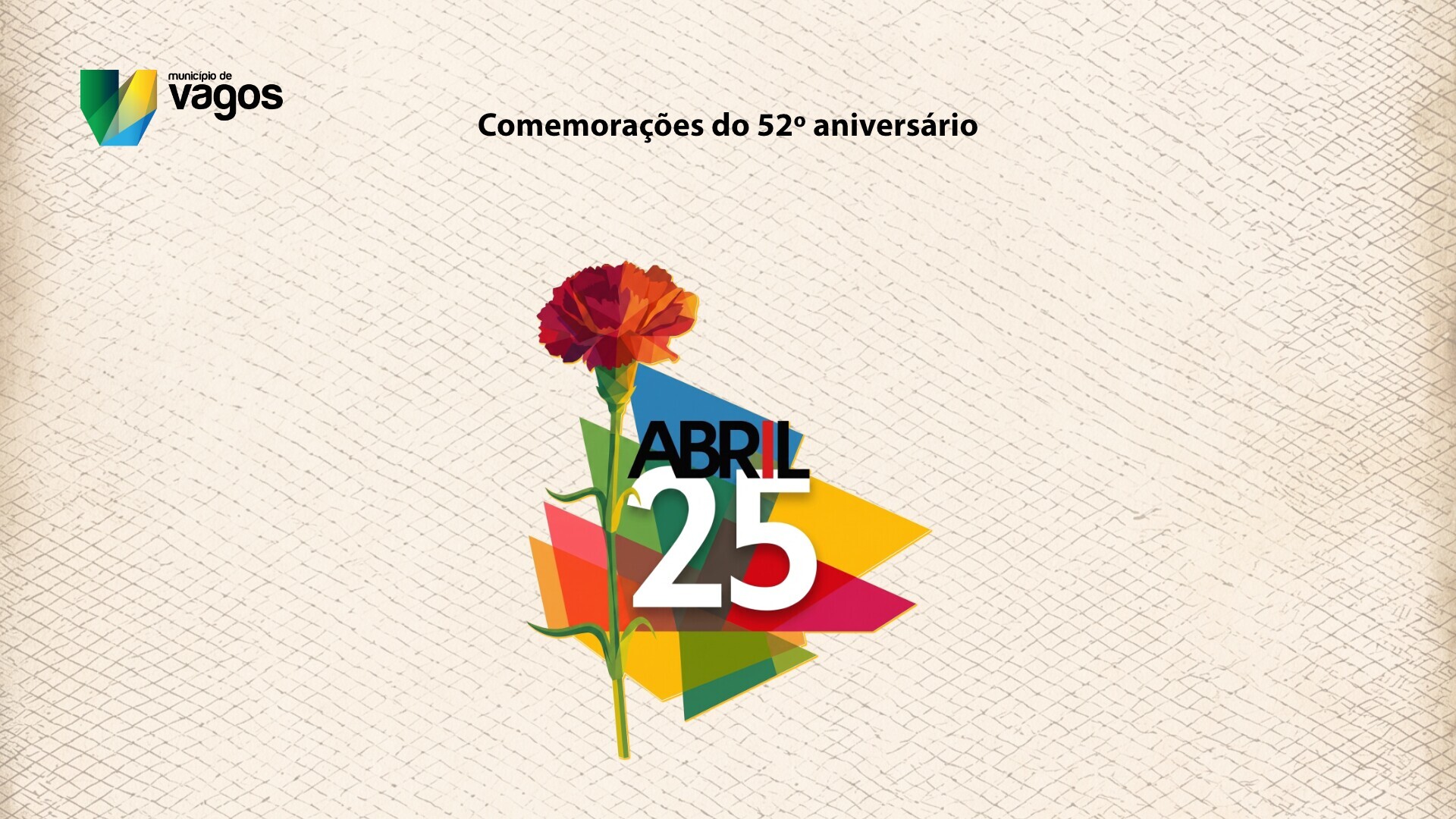 área de conteúdos (não partilhada)A Assembleia Municipal e a Câmara Municipal de Vagos promovem, no próximo dia 25 de abril, as comemorações do 52.º aniversário da Revolução dos Cravos, num programa que, pela primeira vez, integra a intervenção dos representantes das associações de estudantes das escolas do concelho na Sessão Solene da Assembleia Municipal.