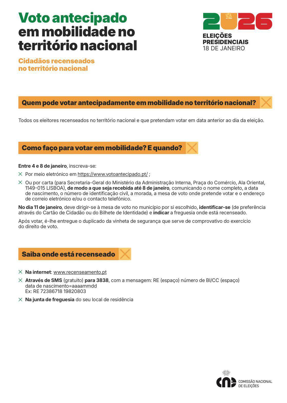 Entre 4 e 8 de janeiro de 2026 - deve manifestar essa intenção, por via postal ou por meio eletrónico em https://www.votoantecipado.pt/