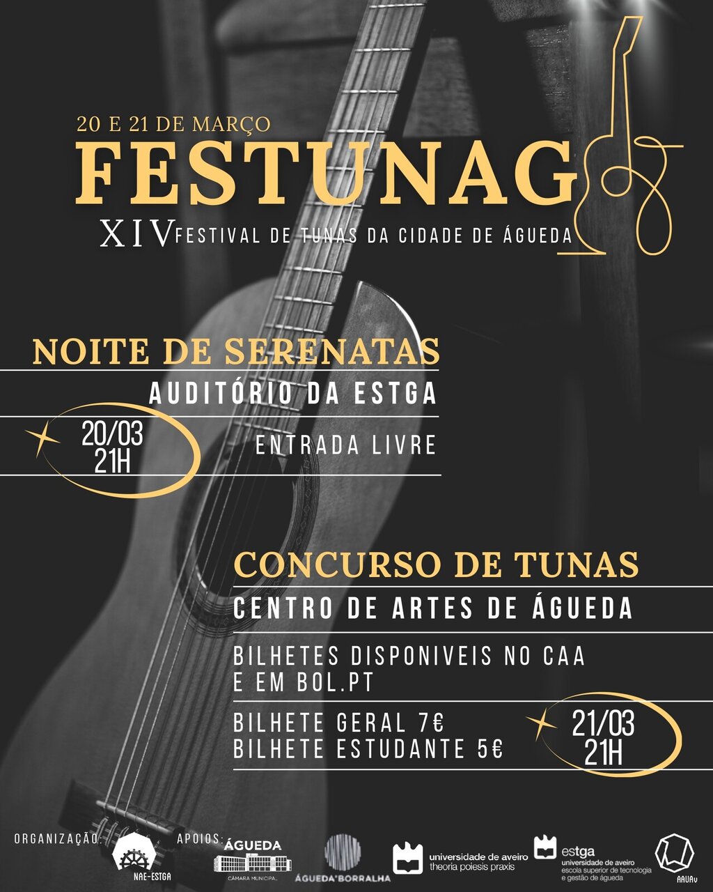 O XIV FESTUNAG – Festival de Tunas da Cidade de Águeda, organizado pelo Núcleo Associativo de Estudantes (NAE) da Escola Superior de Tecnologia e Gestão de Águeda (ESTGA) vai decorrer dias 20 e 21 de março.
