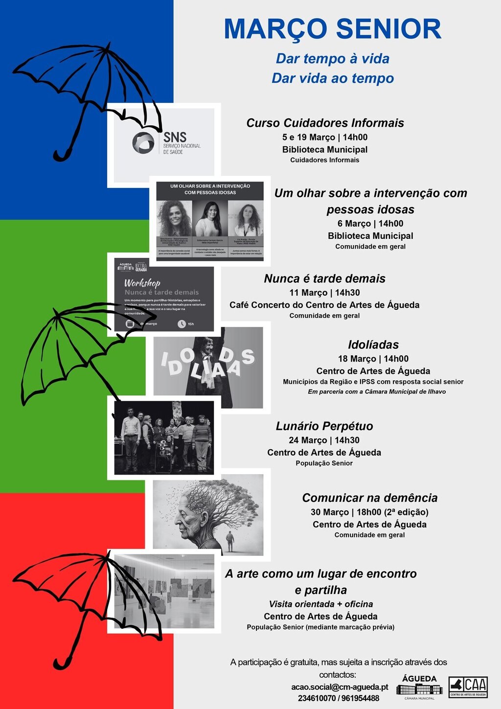 Em março, o Município de Águeda preparou um conjunto de atividades especialmente dedicadas à população sénior do concelho, aos profissionais das IPSS e a toda a comunidade.