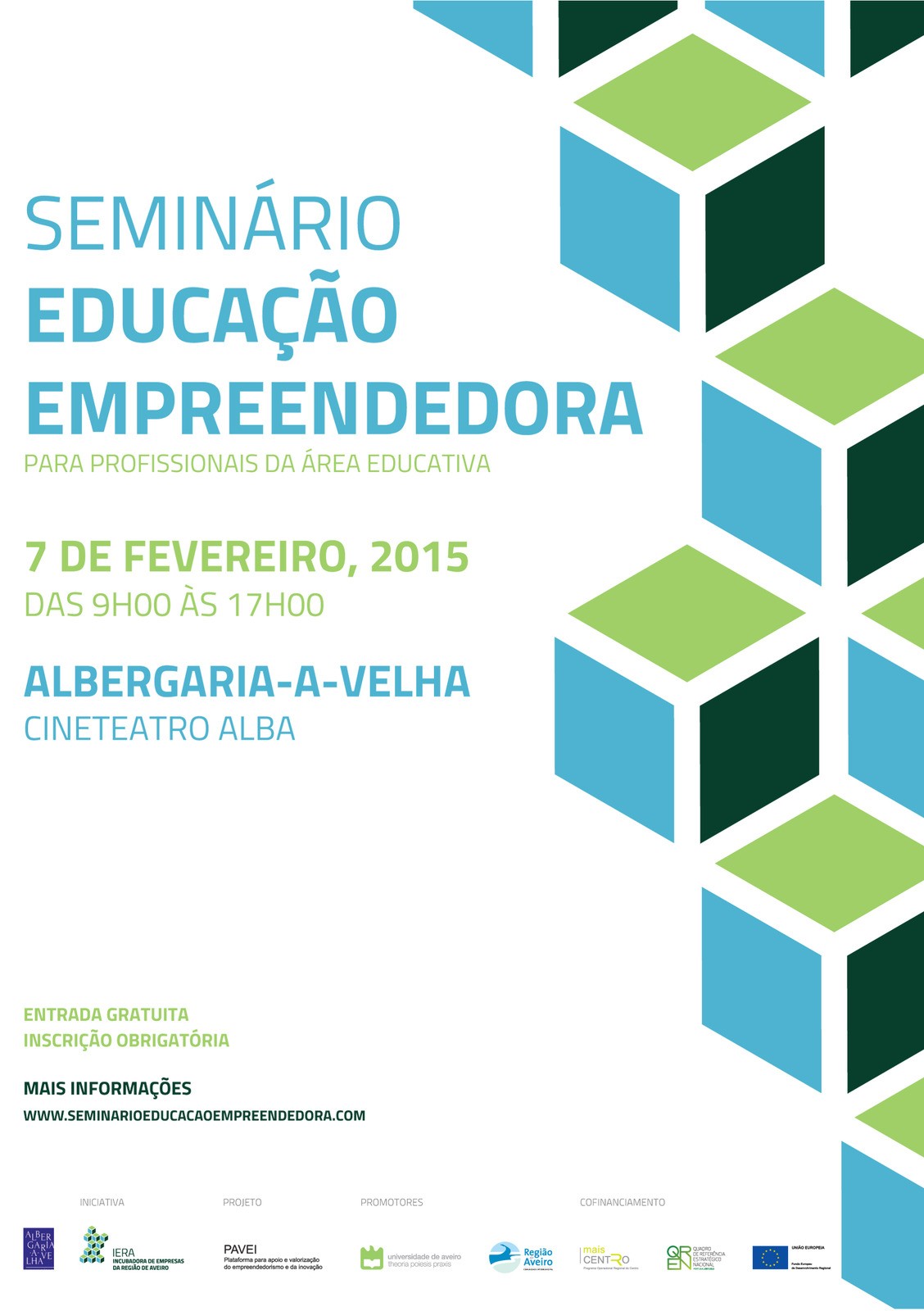área de conteúdos (não partilhada)A Incubadora de Empresas da Região de Aveiro (IERA) vai realizar a 7 de fevereiro, pelas 9h00, o Seminário “Educação Empreendedora”, no Cineteatro Alba, em Albergaria-a-Velha.