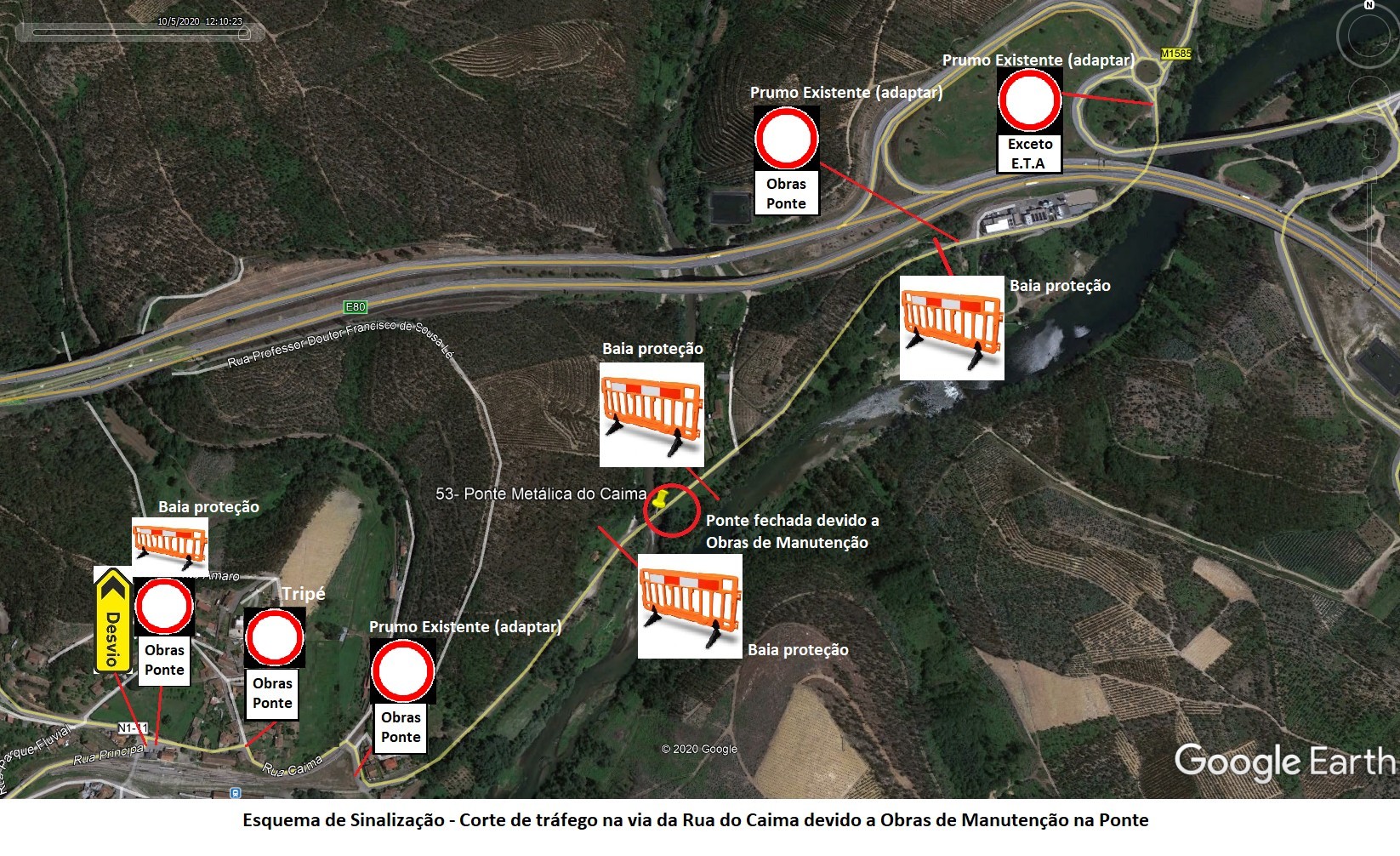 Na sequência de obras de manutenção a realizar na ponte metálica do Caima haverá necessidade de interrupçao do tráfego nesta via, na proxima quinta-feira, 14 maio 2020, entre as 8.30h e as 17.00h para que se possa proceder aos trabalhos mencionados.