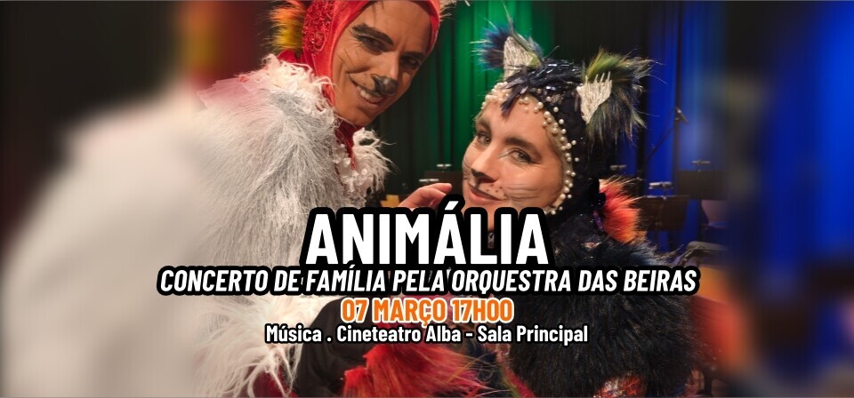 A Orquestra das Beiras apresenta Animália, uma viagem fantástica onde a música encontra o mundo animal. Que histórias nos contam os compositores? E que histórias nos contam os gatos desses compositores? Com as suas sete vidas e muitas travessuras, estes felinos especiais têm histórias surpreendentes para partilhar. Animália foi um projeto encomendado pela Real Fillharmonia da Galiza, para o ano de 2026, e conta com a participação dos músicos Sofia Nereida e António Miguel Teixeira, sob a direção do Maestro Jan Wierzba.