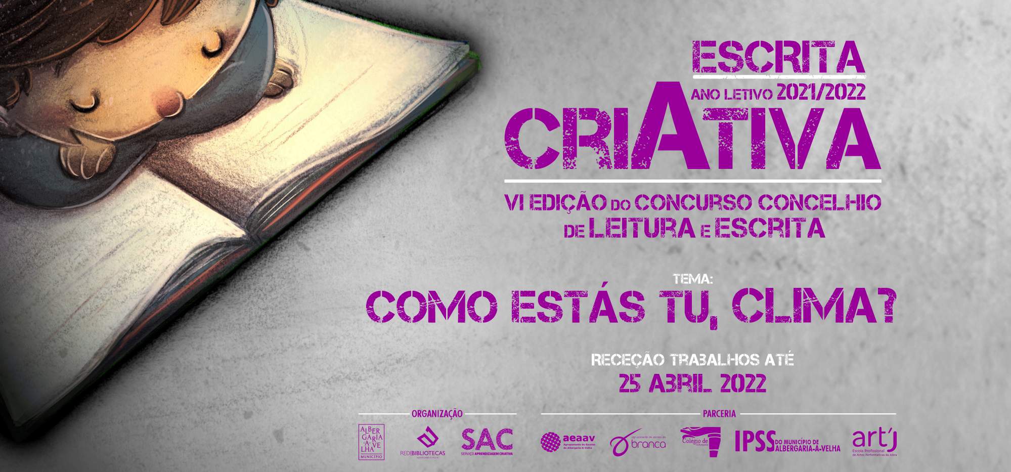criAtiva ESCRITA é um Concurso Literário destinado a promover experiências em torno do desenvolvimento de competências associadas à promoção da escrita ativa, assentes em aprendizagens e criatividade. Nesta VI edição, o tema proposto é “Como estás tu, Clima?”.