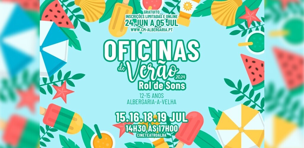 Com as “Oficinas de Verão”, pretende-se oferecer aos jovens a oportunidade de explorar e desenvolver o seu talento musical, independentemente do seu nível de habilidade ou experiência prévia na área. Em cada uma das oficinas/módulo, que terão lugar no Cineteatro Alba, das 14h30 às 17h00, vão ser abordados os seguintes temas – “jogos rítmicos” (desenvolvimento de padrões rítmicos a partir de vídeos e áudio); “música tradicional” (interpretação de músicas populares com cavaquinho e percussões); “APP de música” (atividades musicais com os utentes da APPACDM de Albergaria-a-Velha); e “criação musical” (criação de temas musicais para serem interpretadas por todos os participantes).