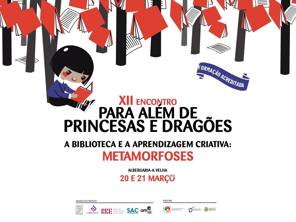 área de conteúdos (não partilhada)A XII edição do Encontro “Para Além de Princesas e Dragões: A Biblioteca e a Aprendizagem Criativa” vai decorrer nos dias 20 e 21 de março, no Cineteatro Alba e Biblioteca Municipal de Albergaria-a-Velha. “Metamorfoses” é o tema da edição de 2026, propondo uma reflexão sobre a complexidade do atual ecossistema informativo e comunicacional.