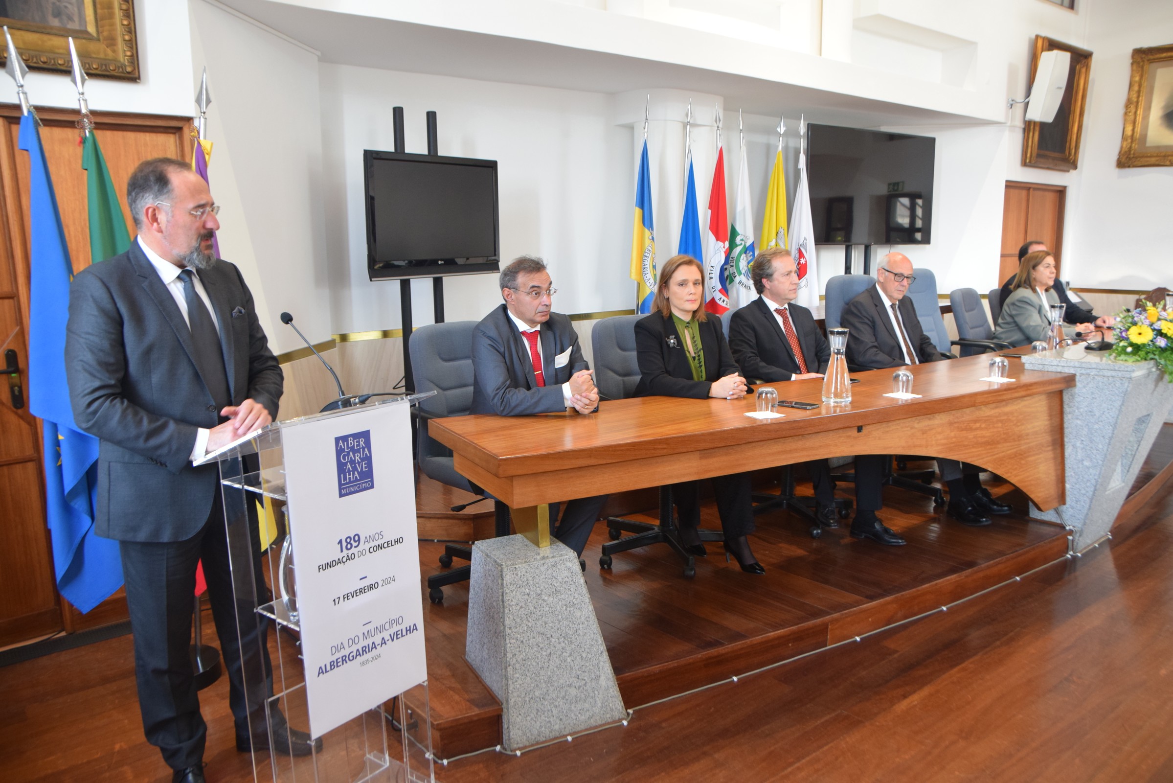 área de conteúdos (não partilhada)“Estamos aqui reunidos para prestar a nossa homenagem àqueles que se destacam pela dinamização de atividades e ações que contribuíram para o aumento do prestígio do nosso Município”, salientou o Presidente da Câmara Municipal, António Loureiro, na cerimónia solene das Comemorações dos 189 anos da Fundação do Concelho.