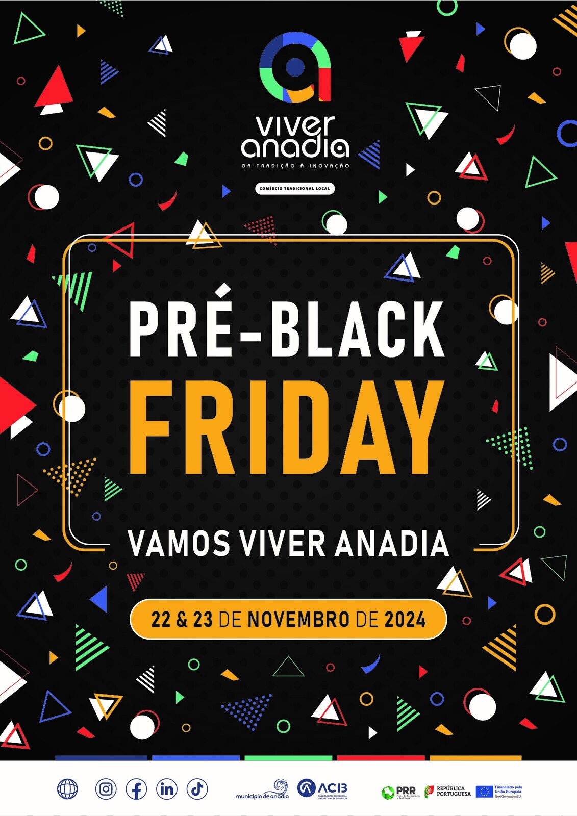 “Viver Anadia”, a marca criada no âmbito do Anadia Digit@ll para a promoção e dinamização do comércio e serviços locais, vai promover, em parceria com o Município e a ACIB, a “Pré Black Friday Anadia”, nos dias 22 e 23 de novembro.