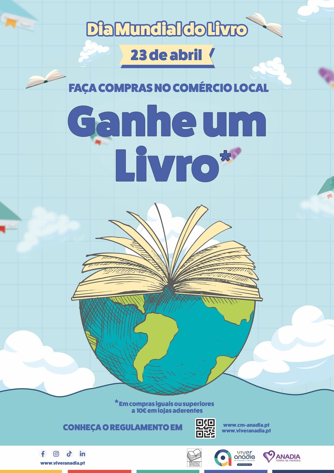 No próximo dia 23 de abril, o Município de Anadia assinala o Dia Mundial do Livro com a campanha “Faça Compras – Ganhe um Livro”, uma iniciativa que alia a promoção da leitura ao incentivo ao consumo no comércio local.