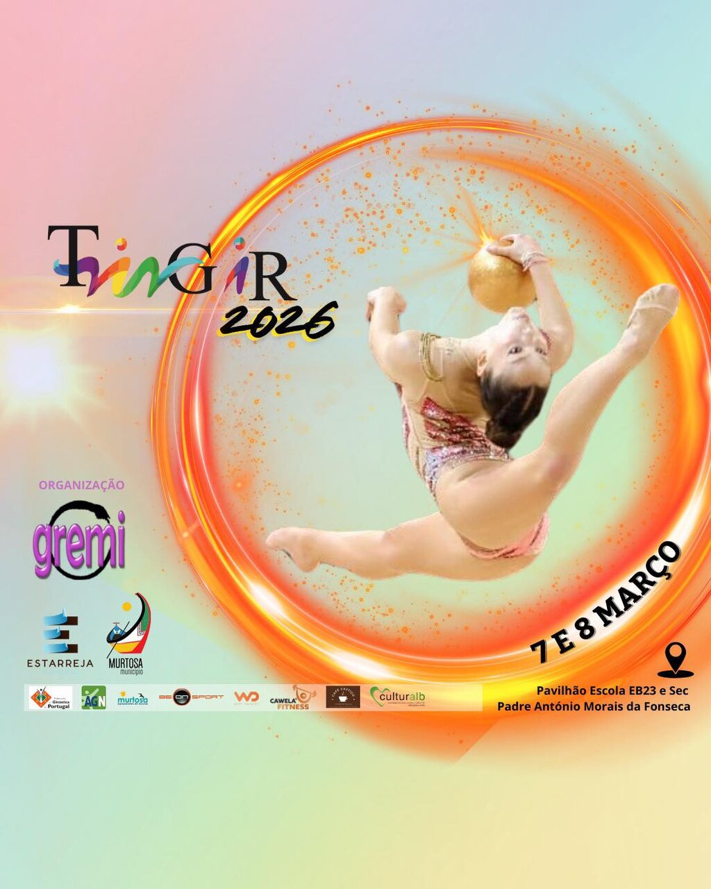 área de conteúdos (não partilhada)Nos dias 7 e 8 de março, a Murtosa recebe a 13.ª Edição do Torneio Tingir, na Escola Padre António Morais da Fonseca, uma competição nacional de Ginástica Rítmica organizada em parceria pelo GREMI, pelo Município da Murtosa e Município de Estarreja.