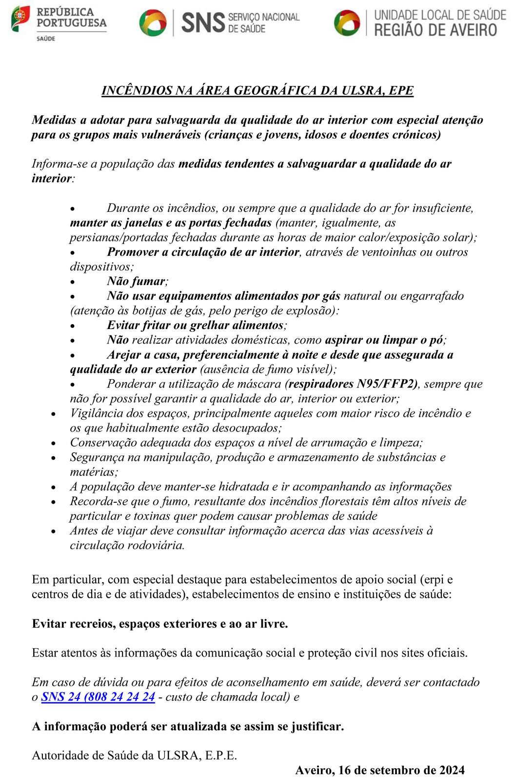UNIDADE LOCAL DE SAÚDE DA REGIÃO DE AVEIRO - INFORMAÇÃO À POPULAÇÃO