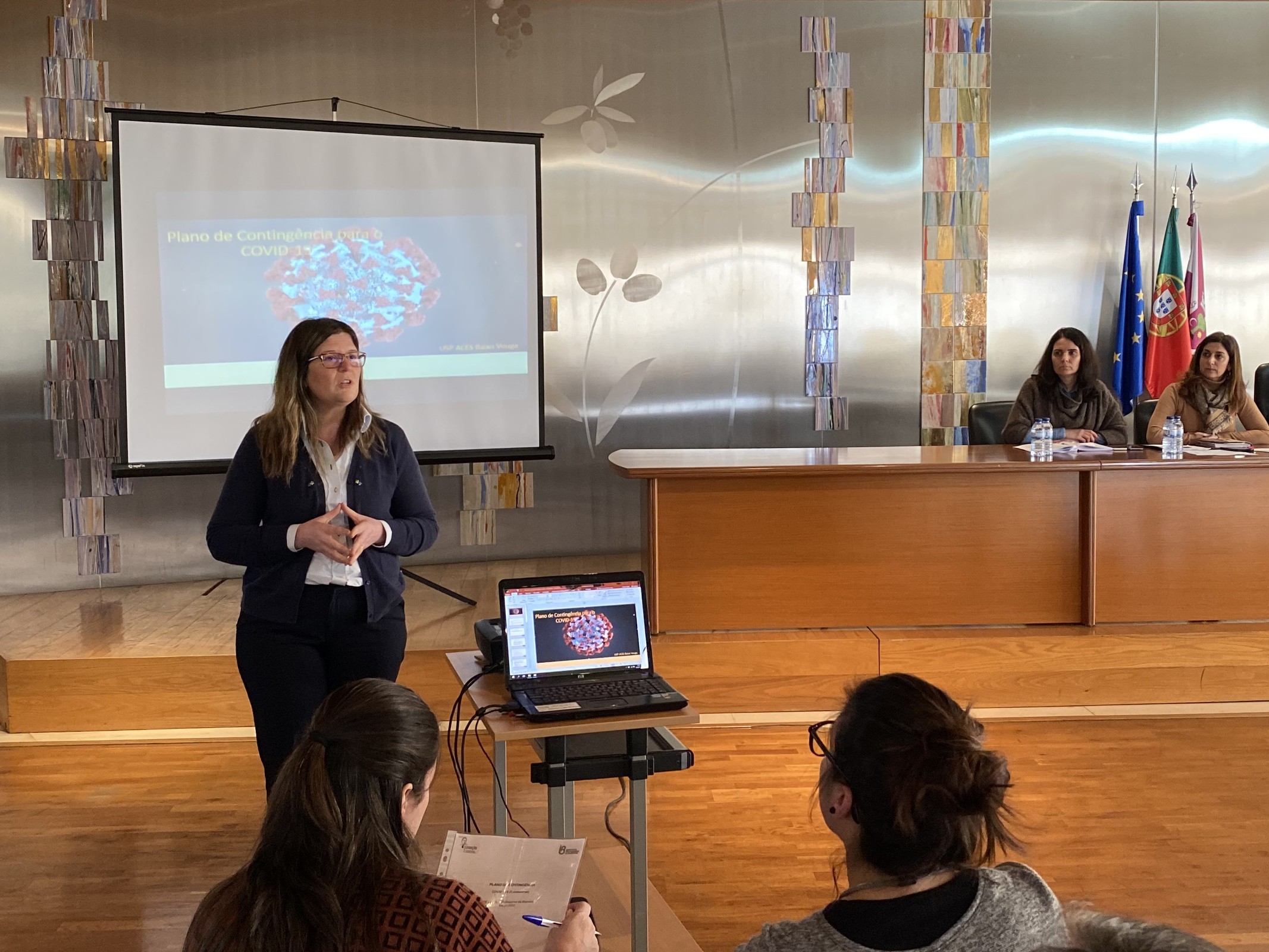Na presença de todo o Executivo Municipal com funções a tempo inteiro, a Enfermeira Manuela Ferreira fez uma apresentação sobre as medidas preventivas e as formas de atuar em caso de suspeita de infeção, esclarecendo ainda alguns “mitos” que vão sendo criados à volta desta epidemia.