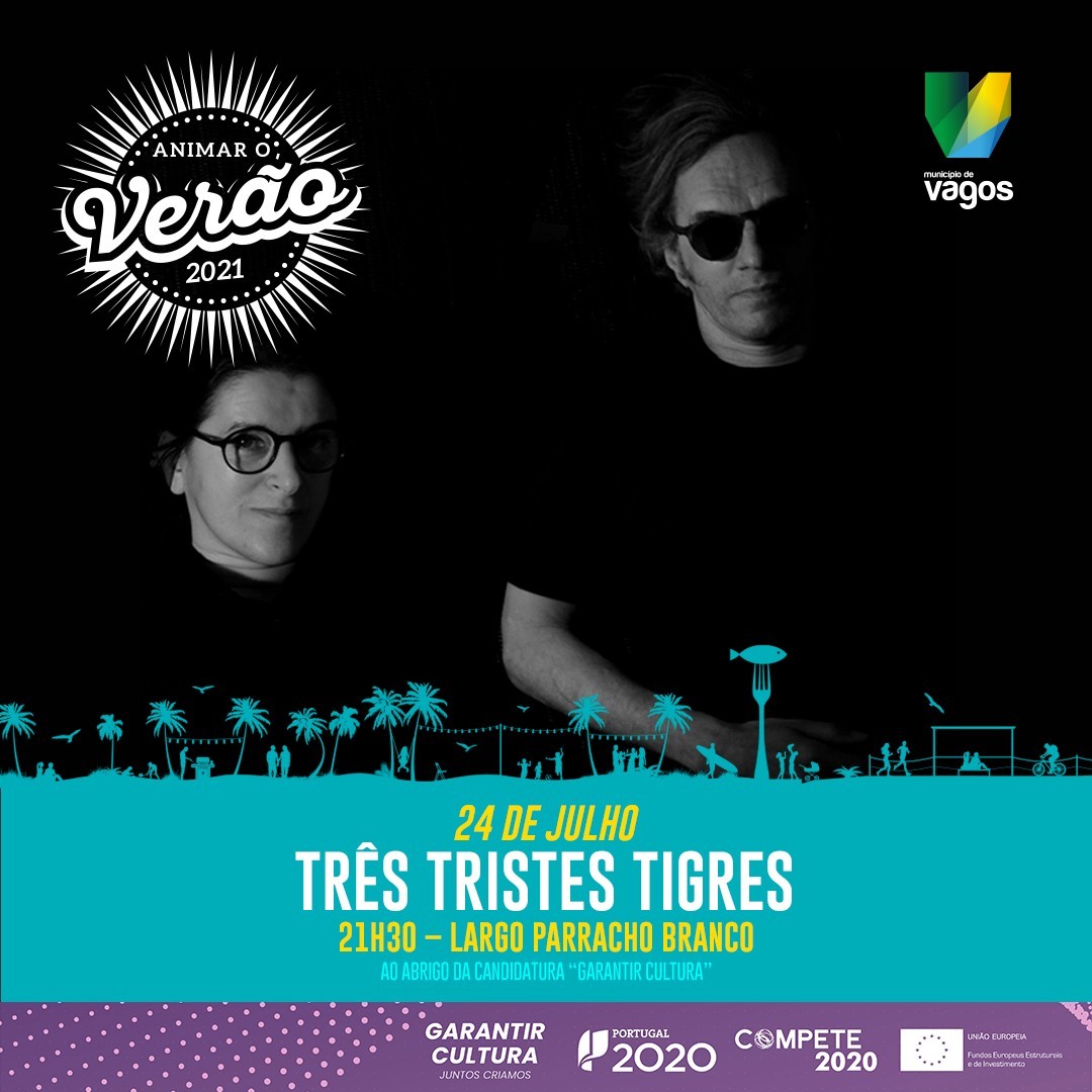 Ao abrigo da Candidatura “Garantir Cultura” e inserido na programação do Animar o Verão 2021, o Largo Parracho Branco, na Praia da Vagueira, recebe no dia 24 de julho pelas 21h30 o Concerto dos Três Tristes Tigres.