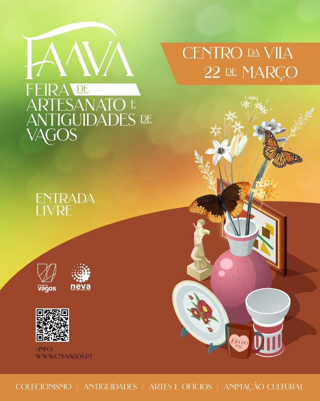 A FaaVa – Feira de Artesanato e Antiguidades de Vagos regressa à Pérgola, no centro da Vila de Vagos, no dia 22 de março de 2026.