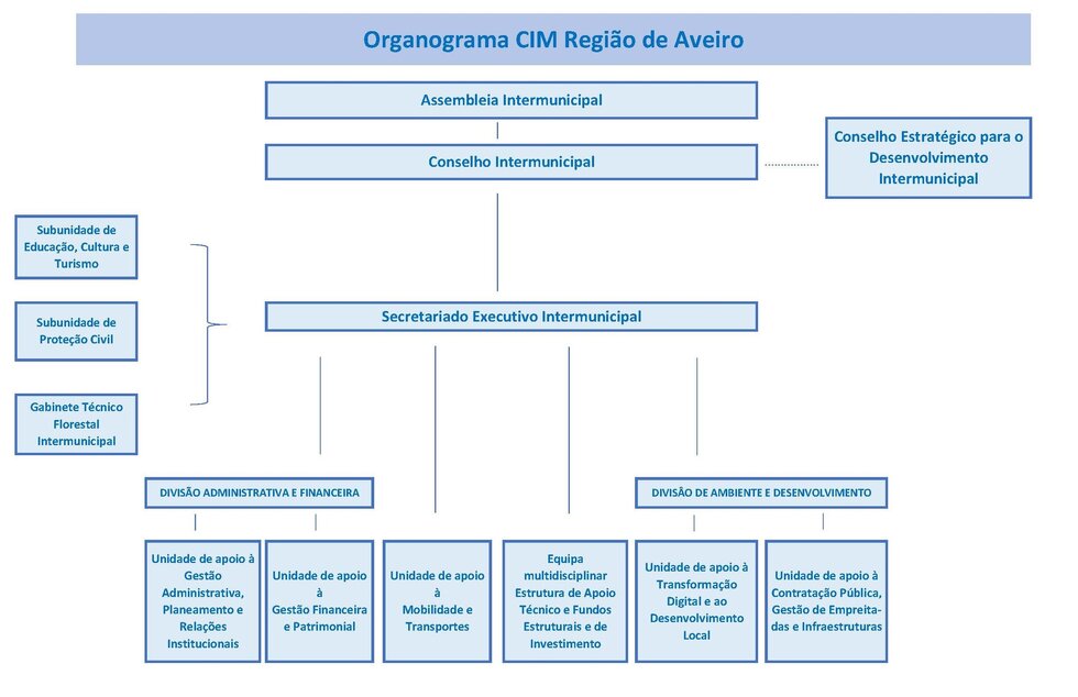 A CI Região de Aveiro é constituída pelos seguintes órgãos: Assembleia Intermunicipal e Conselho Intermunicipal. Junto do Conselho Intermunicipal, e por decisão deste, pode funcionar um órgão consultivo (Conselho Estratégico para o Desenvolvimento Intermunicipal) integrado por representantes dos serviços públicos regionais do Estado e dos interesses económicos, sociais e culturais da sua área de intervenção.