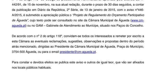 Votação dos 26 projetos finalistas do OP-Águeda até 30 de setembro
