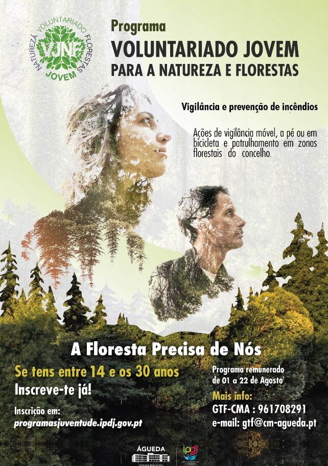 A Câmara Municipal de Águeda, em parceria com o Instituto Português da Juventude (IPDJ), promove o programa “Voluntariado Jovem para a Natureza e Florestas - 2023”. A ação vai decorrer de 1 a 22 de agosto e envolverá jovens entre os 14 e 30 anos, que farão vigilância nas várias áreas florestais do concelho.