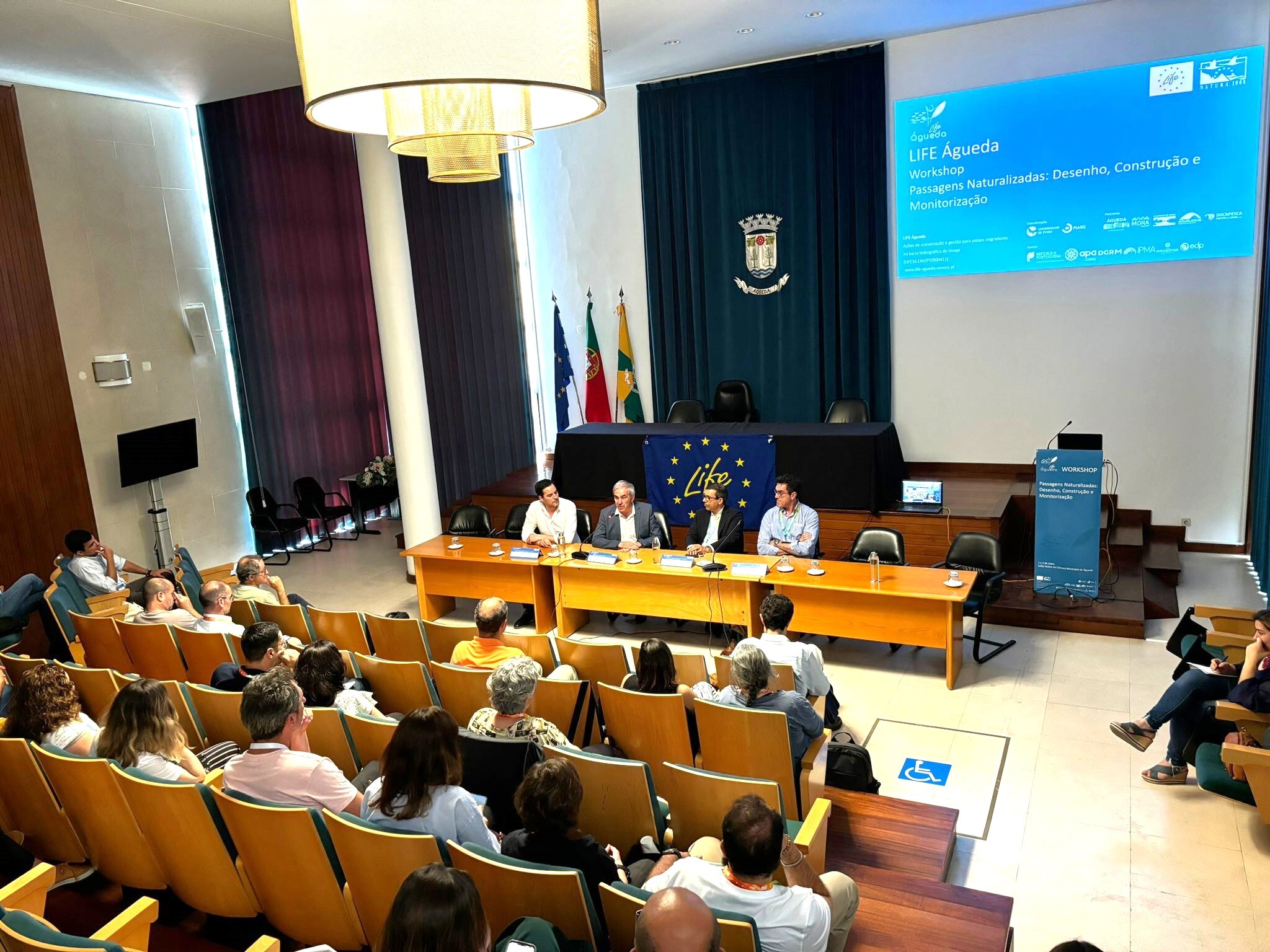 “O LIFE é um projeto que orgulha Águeda”, disse Jorge Almeida, Presidente da Câmara Municipal de Águeda, no encerramento do workshop “Passagens Naturalizadas: Desenho, Construção e Monitorização”, promovido no âmbito do LIFE Águeda e que reuniu, no Salão Nobre dos Paços do Concelho, especialistas nacionais no domínio das passagens para peixes.