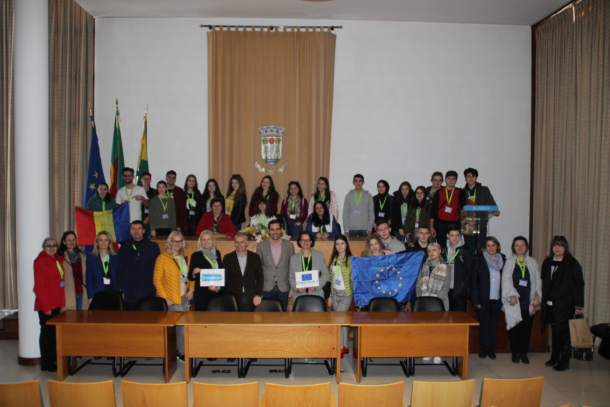 No âmbito do projeto "Setting our minds free from stereotypes", que decorre inserido no programa Erasmus +, o Município de Águeda recebeu hoje, no Salão Nobre dos Paços do Concelho, uma comitiva de 24 alunos e 10 professores oriundos de quatro países diferentes: Turquia, Macedónia, Roménia e Lituânia.