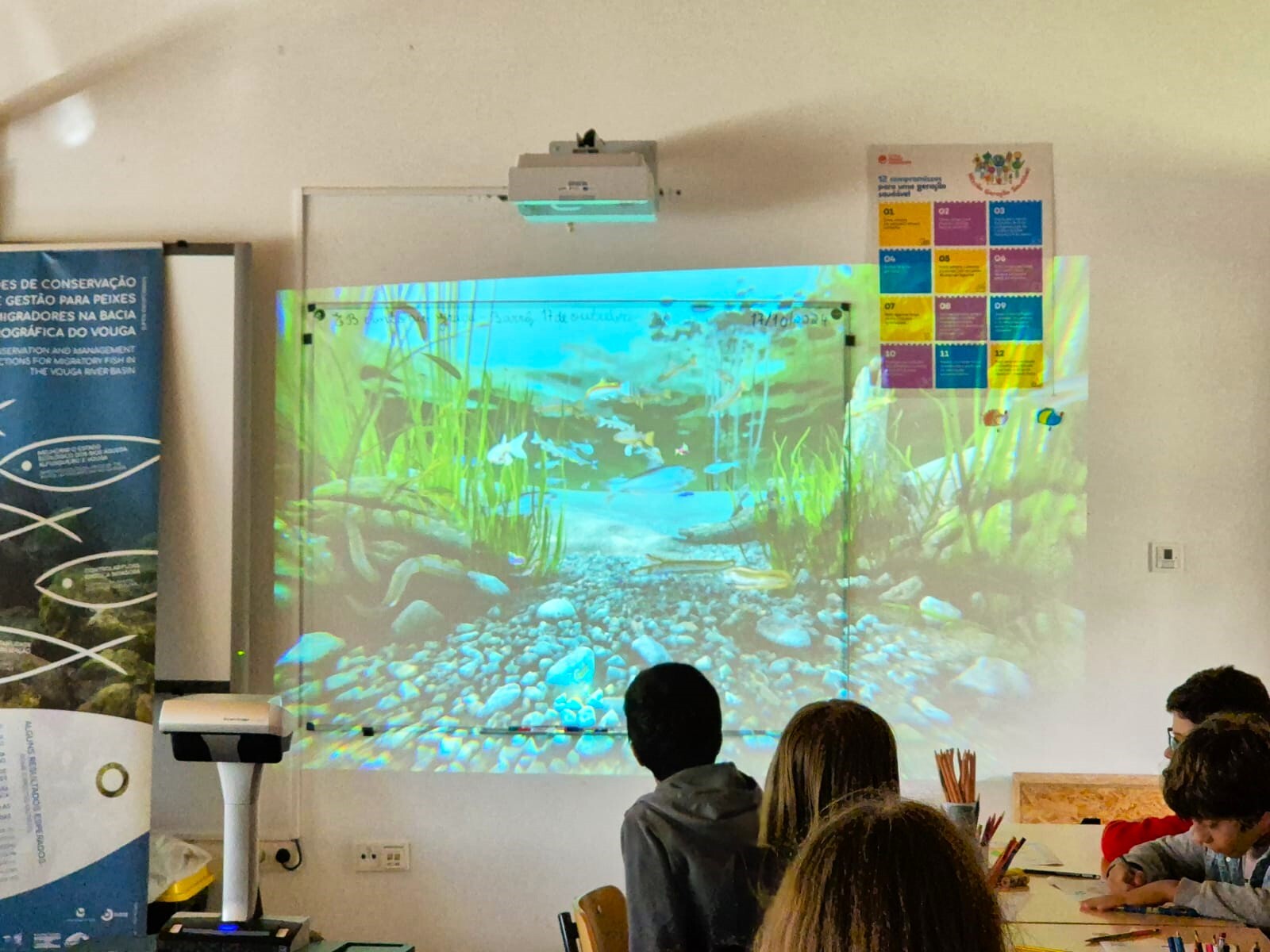Após a explicação das principais vertentes, áreas de atuação e alguns resultados do projeto LIFE Águeda, os alunos são sensibilizados para os conjuntos de espécies existentes nos rios da região, como a enguia, o ruivaco, o sável, a truta ou o verdemã. Os técnicos municipais fazem uma explicação de algumas das características destes animais e é projetado o ambiente virtual do rio.