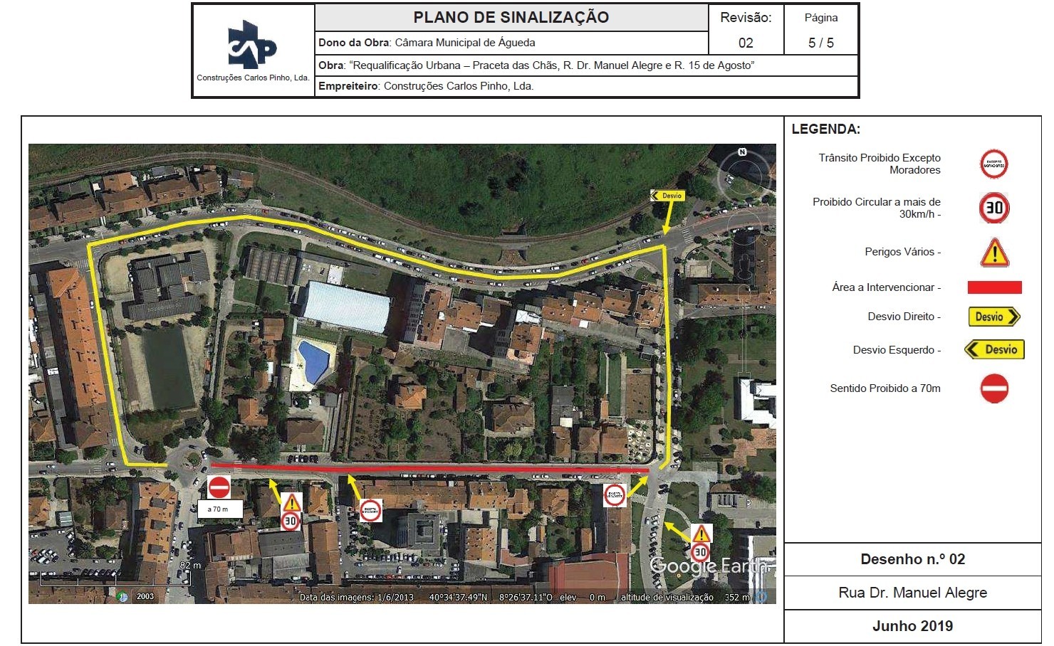 Planta de sinalização - Obra: ' Requalificação Urbana - Praceta das Chãs, R. Dr. Manuel Alegre e R. 15 de agosto'