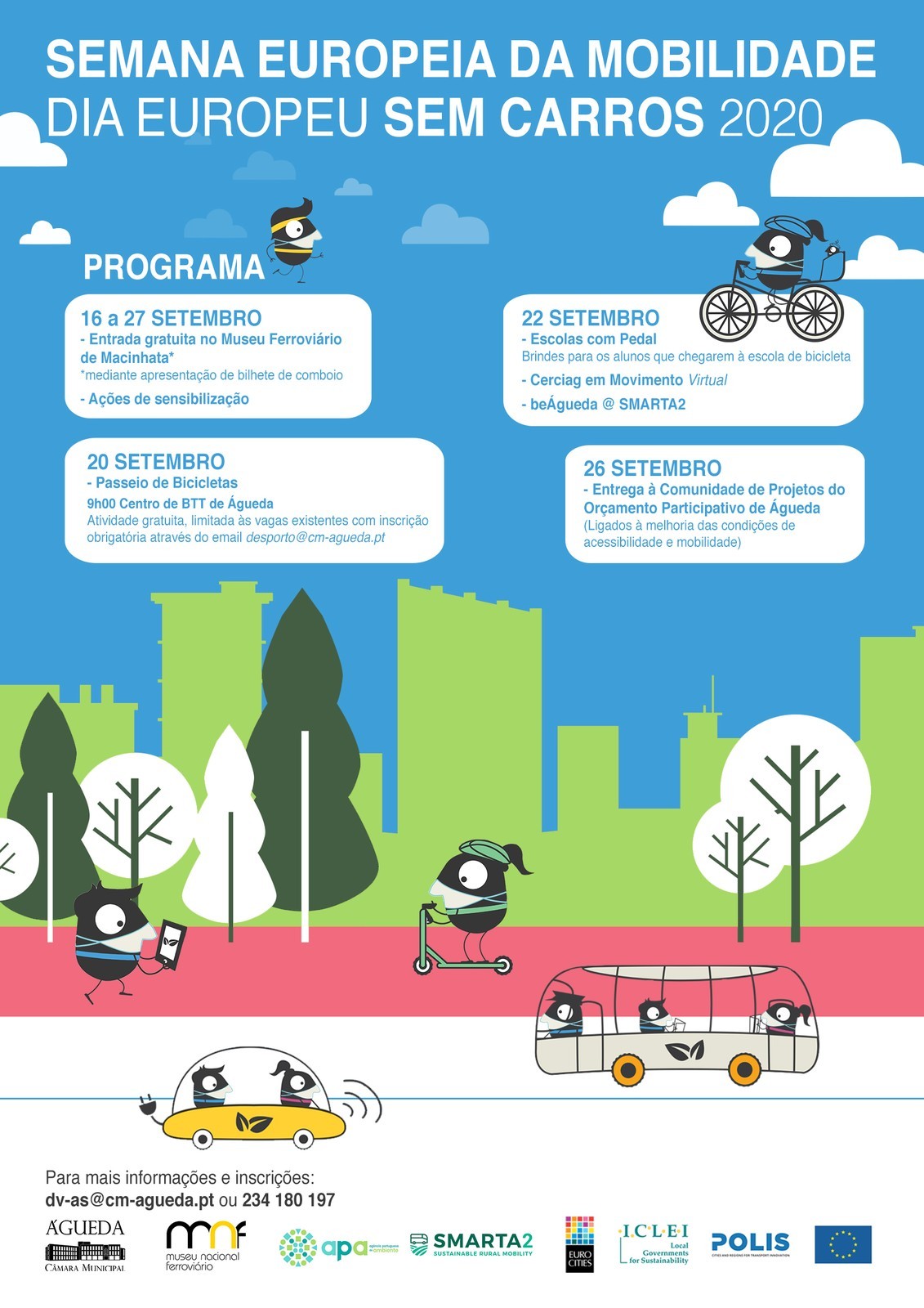 A Câmara Municipal de Águeda preparou um programa específico para integrar a comemoração da Semana Europeia da Mobilidade (SEM), cujo tema central é “Emissões Zero, Mobilidade para todos”, e que, apesar de este ano sofrer limitações no tipo de atividades, tendo em conta a pandemia COVID-19, não deixará de ser assinalado.