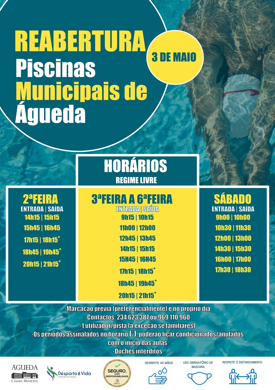As piscinas municipais vão abrir novamente ao público no próximo dia 3 de maio. Conheça os horários disponíveis para o regime livre e outras informações sobre as condições de utilização.
