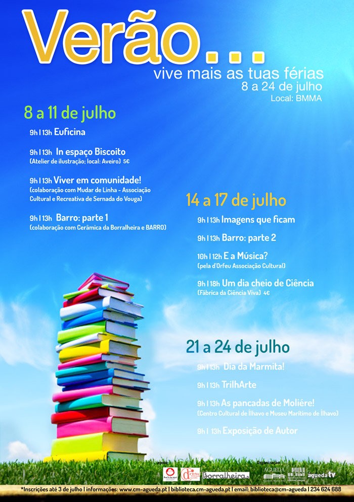 área de conteúdos (não partilhada)A Câmara Municipal de Águeda mantém a aposta em programas de ocupação de tempos livres durante as férias escolares dos nossos jovens e para isso dinamiza na Biblioteca Municipal Manuel Alegre o programa gratuito “Verão… vive mais as tuas férias”, de 7 a 24 de julho.