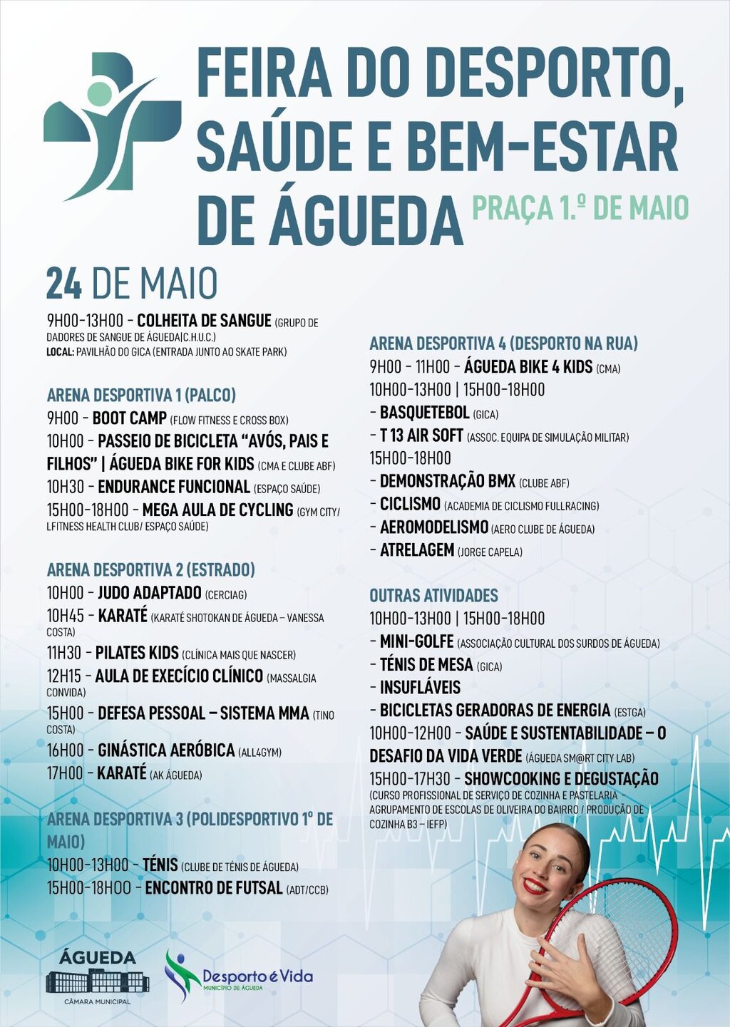 A Câmara Municipal de Águeda promove, entre os dias 23 e 25 de maio, na Praça 1.º de Maio, a 3.ª edição da Feira do Desporto, Saúde e Bem-Estar.