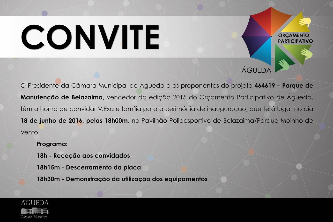 Inauguração do Parque de Manutenção de Belazaima no dia 18 de junho de 2016, pelas 18:00h, no pavilhão polidesportivo de Balazaima/Parque do Moinho de Vento.