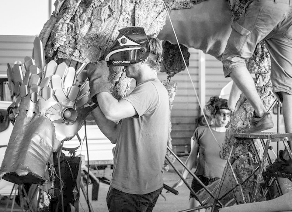 La Fumisterie é um coletivo de três artistas de caminhos artísticos diferentes. Sara Delgado de Portugal, Roman Estebe França e Thomas Probst Bruxelas, que apresenta performances em torno do elemento fogo e da construção mecânica com metal.