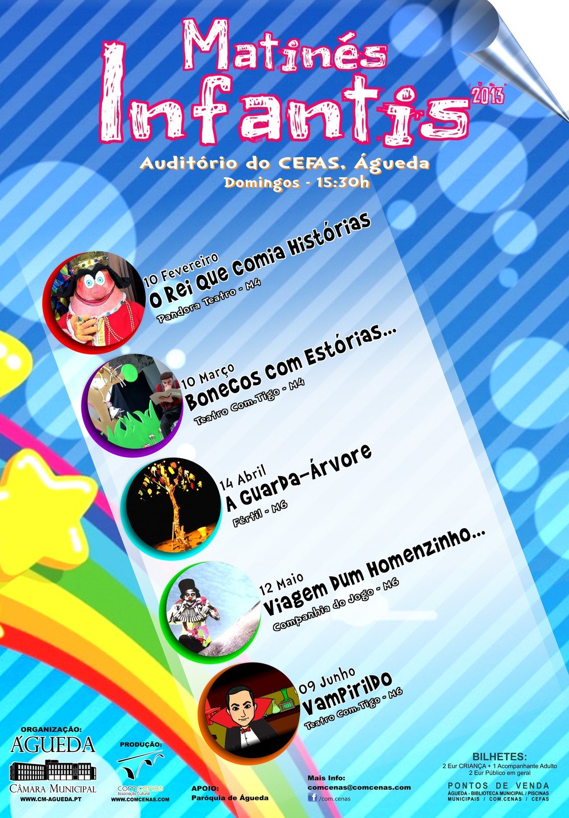 Entre fevereiro e junho de 2013, às 15:30 do 2.º domingo de cada mês, sobem ao palco do Auditório do CEFAS 5 peças de teatro para a infância. Esta é uma iniciativa da Câmara Municipal de Águeda, com a produção da Com.Cenas Associação Cultural, e o apoio da Paróquia de Águeda.