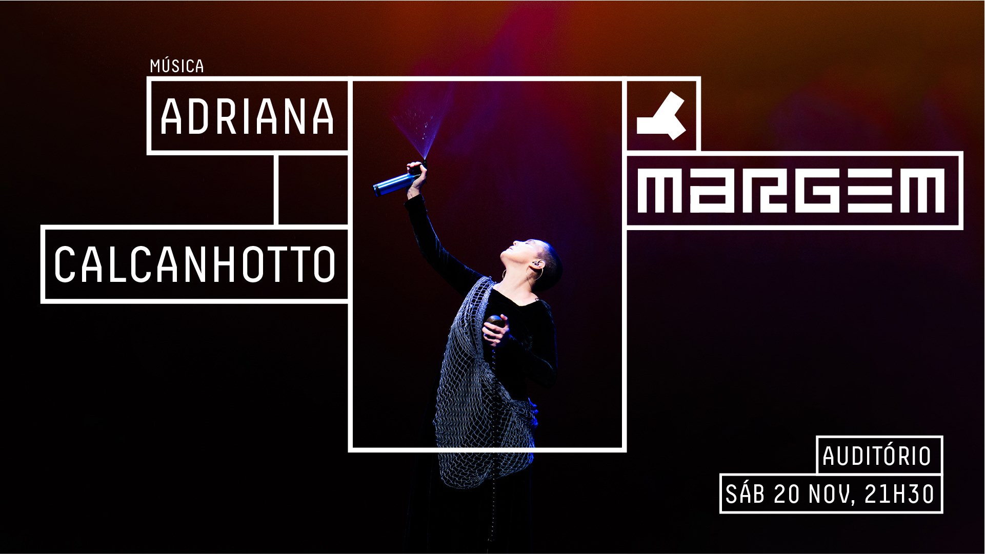 área de conteúdos (não partilhada)Com o novo disco “Margem”, Adriana Calcanhotto fecha a trilogia marítima iniciada com “Maritmo” (1998) o primeiro que explicita a sua paixão pelo mar e “Maré” (2008), seu sétimo disco, que reforça a ambiência oceânica. “Margem” permite, em palco, o encontro destes três projetos marítimos, separados por dez anos cada um e por diferentes aventuras musicais entre eles.