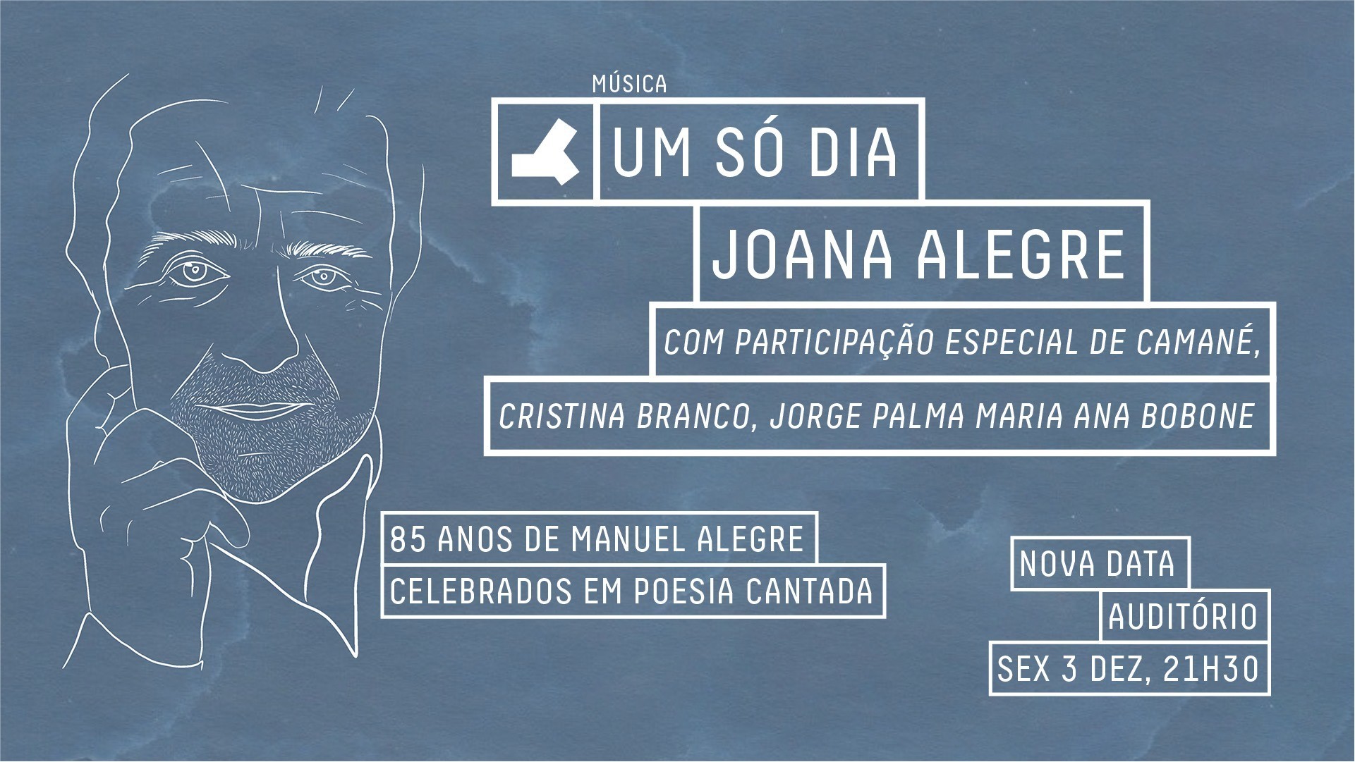 área de conteúdos (não partilhada)Pela ocasião dos 85 anos de Manuel Alegre, chega o momento oportuno de celebrar e homenagear a poesia de um dos poetas portugueses mais cantados de sempre. “Um Só Dia”, junta grandes nomes da música portuguesa numa ocasião singular que relembra em novos arranjos, canções célebres como “Meu Amor é Marinheiro” ou “Uma Flor de Verde Pinho”, e revela pela primeira vez temas inéditos de Joana Alegre musicados a partir da poesia do pai. Com a participação especial de Jorge Palma, Cristina Branco, Camané, entre outros, direção artística de André Santos e curadoria de Joana Alegre, uma celebração de hoje e para o futuro, na música por dentro da língua-mãe.