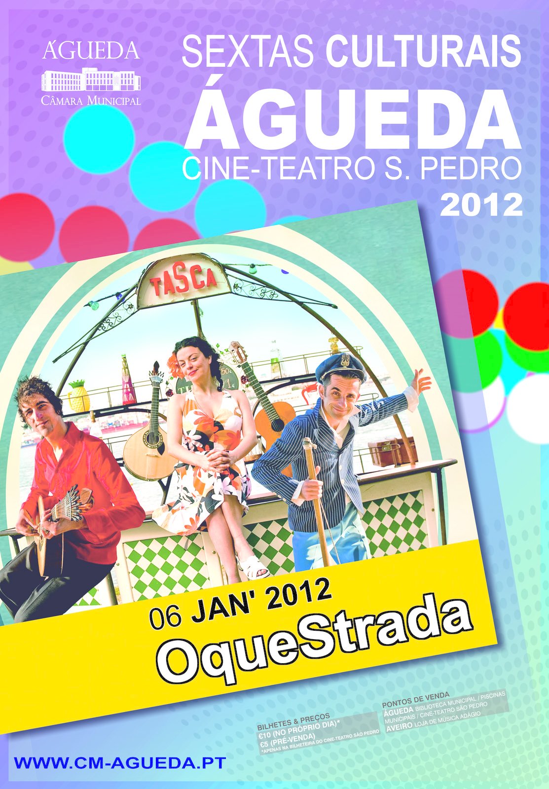A edição de 2012 tem o seu primeiro espectáculo a 6 de Janeiro, com os OqueStrada a subirem ao palco do Cine-teatro São Pedro pelas 22:00. De beat na mão, fado no coração e olhos na alma, os OqueStrada moldaram a sua condição. Andam “a monte” por estradas nacionais e internacionais desde 2002, “namoraram” e conquistaram público por entre romarias, salas de espectáculo e bailes de Verão; foram abençoadas por filarmónicas, fadistas e outros; riram; choraram; beberam, cantaram, partilharam sensações e emoções, está na sua hora… OqueStrada não contempla o país: vive-o. OqueStrada não é para turista. Não é lágrima prevista. OqueStrada é outro fado, sentido e magoado, mas também atlético e sempre, mas sempre, vibrante.