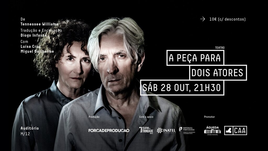 Bilhetes disponíveis em - https://ticketline.sapo.pt/evento/a-peca-para-dois-actores-75732/sessao/99078_2650_1698525000