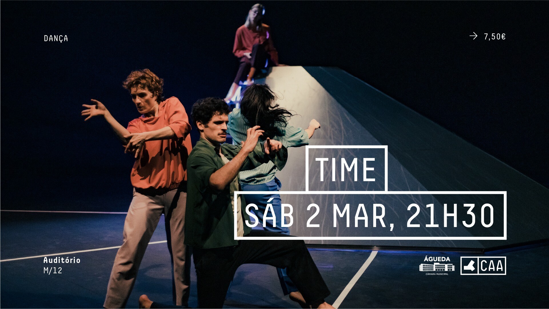 TIME é tempo de estarmos juntos, dentro de uma sala de teatro a brincar. TIME é uma peça de dança, criada para duas atrizes e um ator, que se desenvolve em torno da enorme complexidade que é o tempo. É uma peça dirigida a jovens, que procura proporcionar a compreensão da natureza do tempo, quer do ponto de vista da sua linearidade, passado, presente, futuro, quer do ponto de vista da sua enorme subjetividade, uma vez que