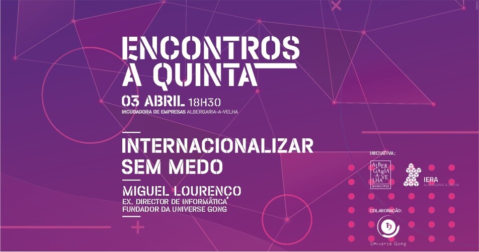 área de conteúdos (não partilhada)Miguel Lourenço, da Universe Gong, é o próximo convidado do ciclo “Encontros à Quinta” na Incubadora de Empresas de Albergaria-a-Velha. Com o tema “Internacionalizar sem medo”, a sessão vai ter lugar a 3 de abril, pelas 18h30, e é de participação gratuita.