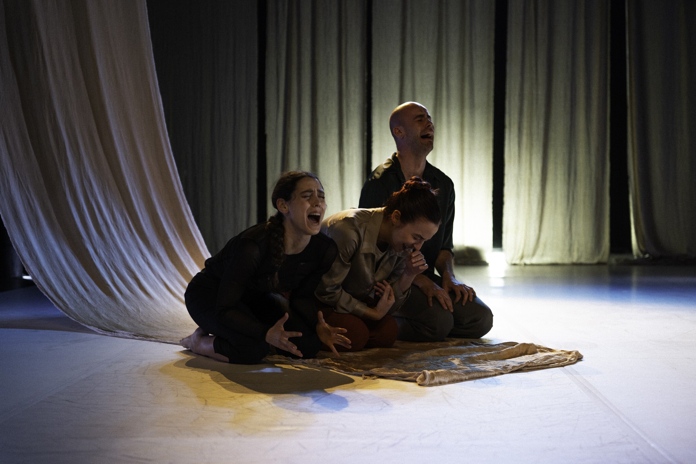Três corpos que são veículo e, em simultâneo, personagem. A partir dos conceitos de “choro” e “coro”, procura-se pensar a sociedade contemporânea, que parece mais ver chorar do que chora e mais solistas ouvir do que coros.