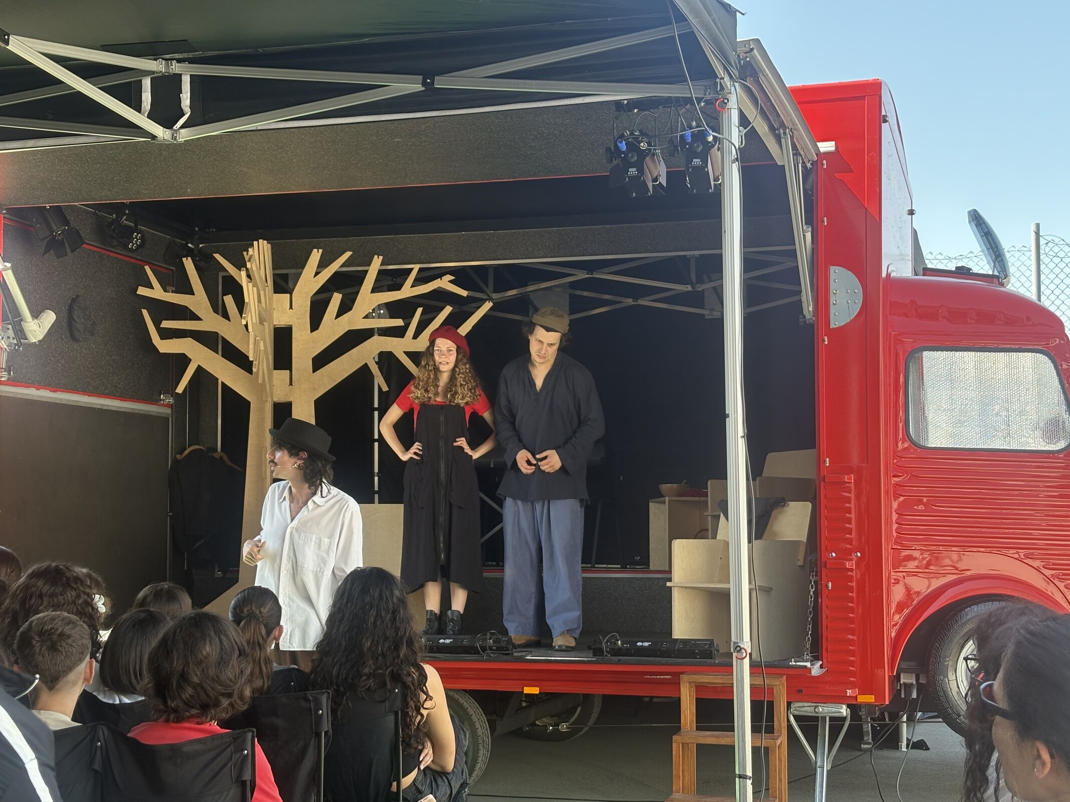 “Teatro Paraíso” foi apresentado nos Agrupamentos de Escolas no âmbito do “Raízes de Leitura”. Este projeto municipal, desenvolvido pelo SAC – Serviço de Aprendizagem Criativa, abarca encenações e outras ações performativas que desenvolvem conteúdos de apoio ao curriculum, sendo os jovens estimulados a desenvolverem as suas competências crítica, afetiva e cognitiva.