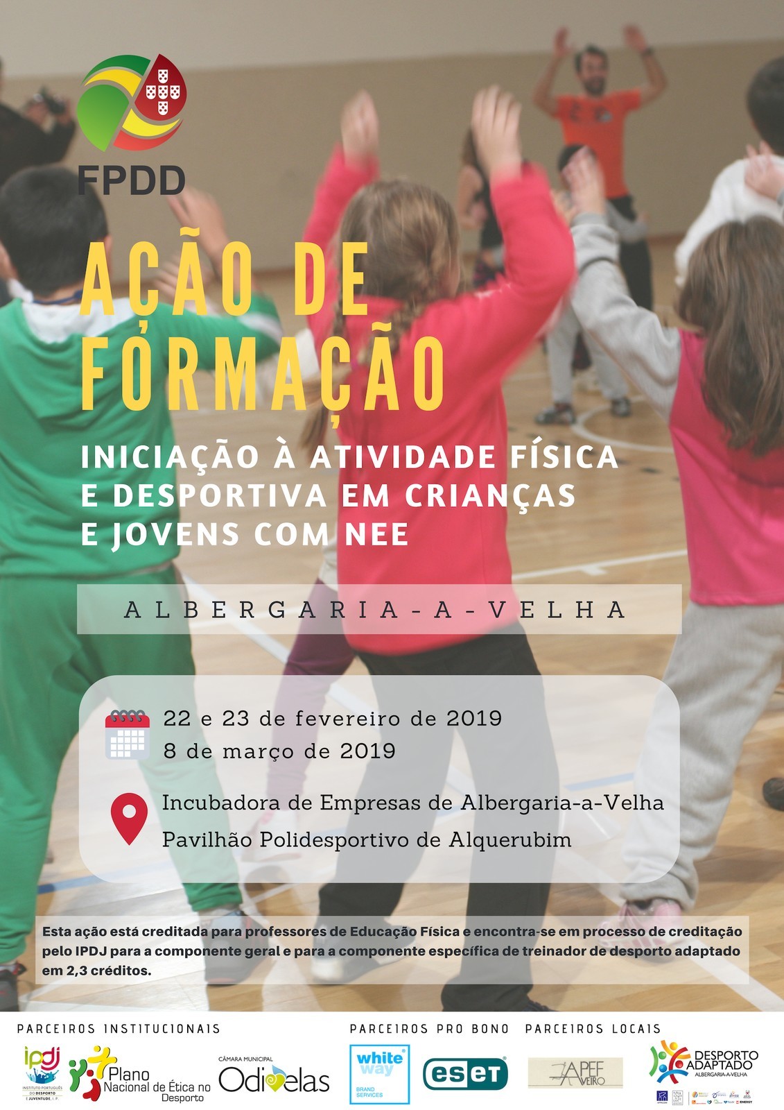 área de conteúdos (não partilhada)A Federação Portuguesa de Desporto para Pessoas com Deficiência (FPDD), em parceria com o Município de Albergaria-a-Velha, vai promover a ação de formação Iniciação à Atividade Física e Desportiva em Crianças e Jovens com Necessidades Educativas Especiais nos dias 22 e 23 de fevereiro e 8 de março. As inscrições já se encontram abertas e têm o preço de 30 euros para professores, sendo a participação gratuita para outros técnicos.