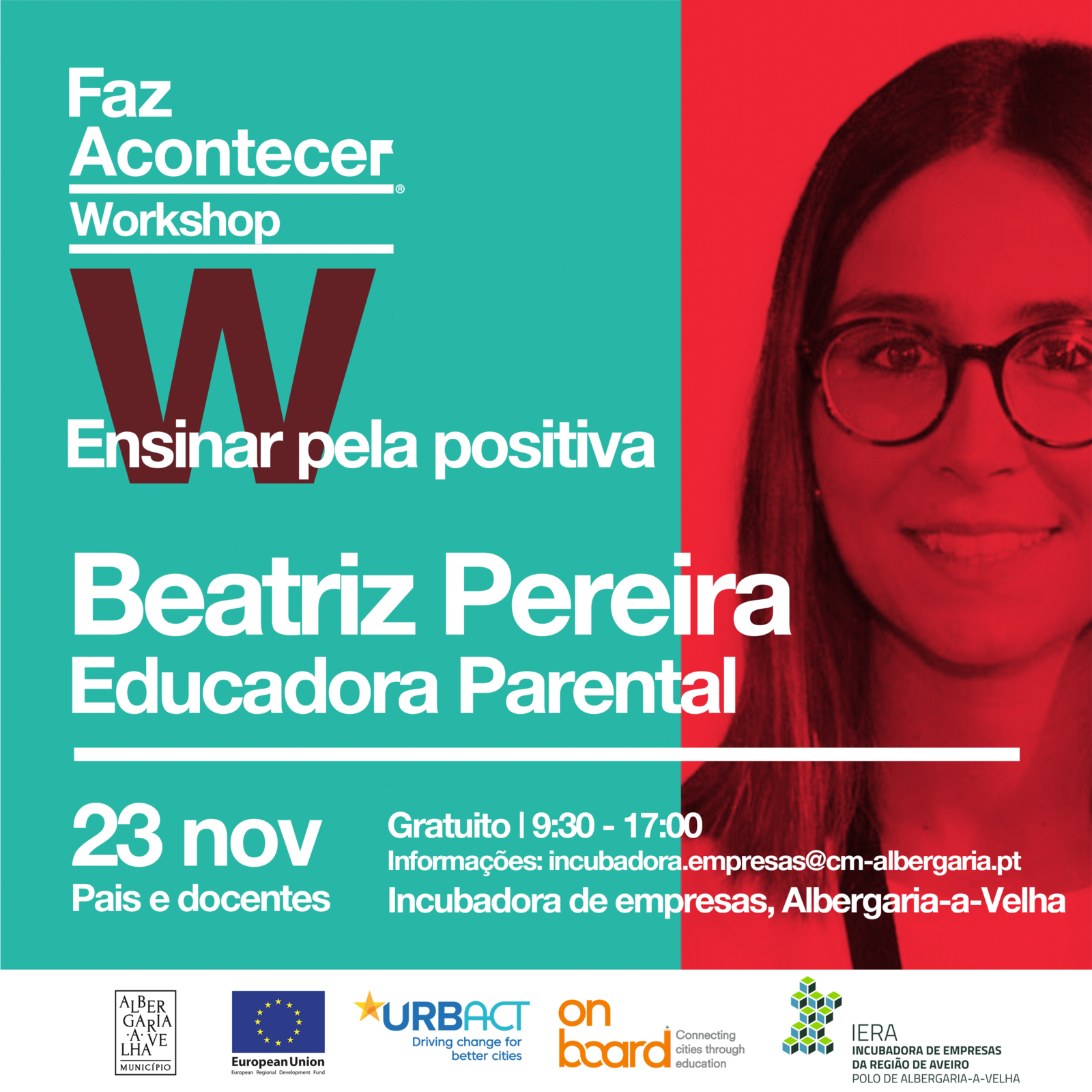 A oficina Ensinar pela Positiva vai ser orientada por Beatriz Pereira, Psicomotricista e Educadora Parental, que irá dar a conhecer as ferramentas e os princípios da Educação Positiva e como aplicá-los para comunicar melhor com as crianças. Entre os conteúdos a desenvolver ao longo do dia, é possível destacar o desenvolvimento do cérebro da criança e o seu impacto na Educação; a gentileza, firmeza e empatia na relação adultos – crianças; as regras e os limites, a obediência e a autoridade; as birras e os comportamentos desajustados; castigar ou dar consequências, entre outros temas.