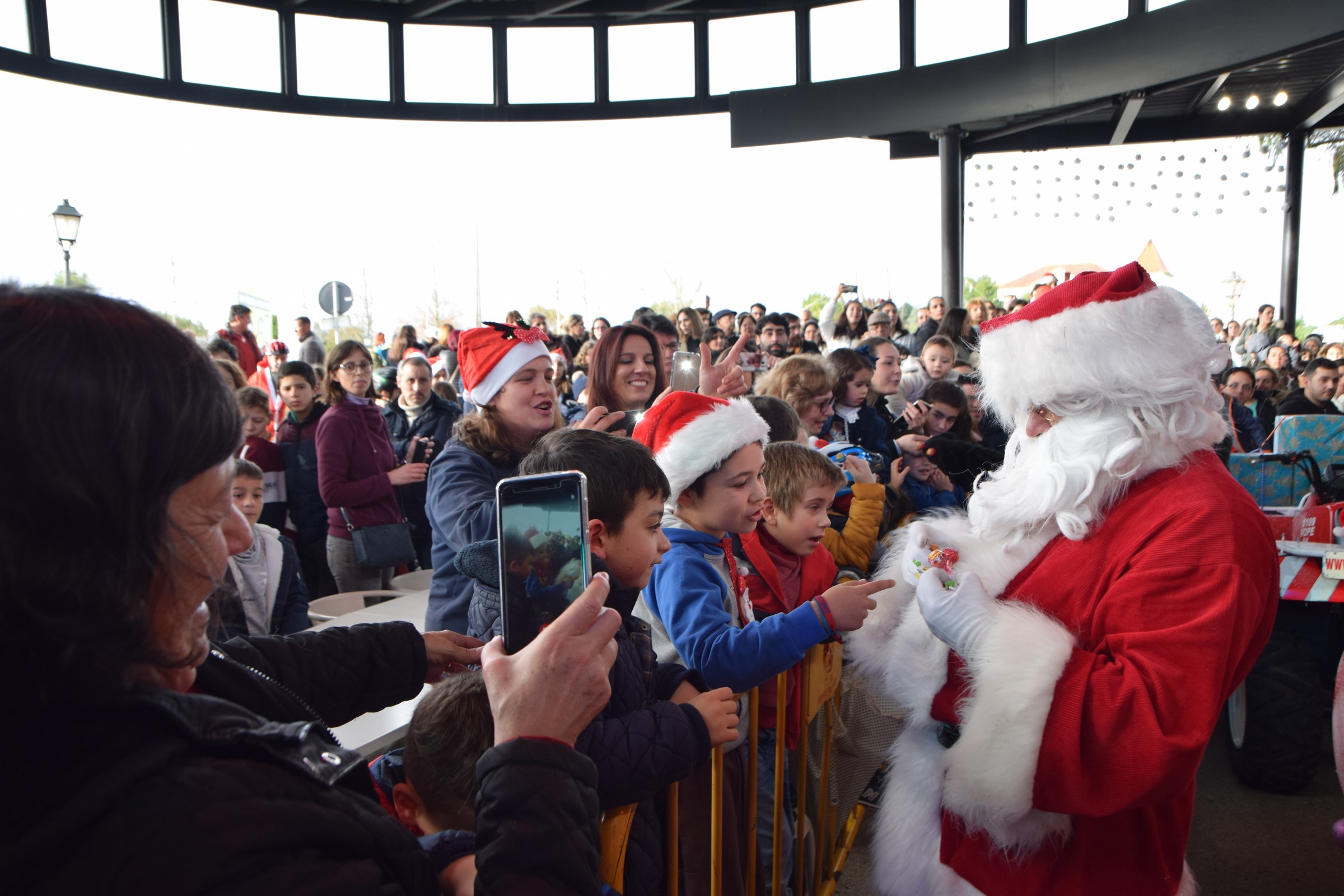 área de conteúdos (não partilhada)Uma Praça cheia e irrequieta aguardou a chegada do Pai Natal a Albergaria-a-Velha na tarde de 14 de dezembro. Acompanhado pelo seu amigo panda, algumas mascotes gigantes e a música do JMP Band, o velhinho de barbas brancas distribuiu beijos, abraços e doces, abrindo depois caminho no trenó até à sua casa, na Alameda 5 de Outubro. Aqui, a fila à porta já era grande mas, no espaço Lugar das Cores, encontravam-se várias atrações para distrair as crianças enquanto esperavam – insufláveis, carrosséis e trampolins.