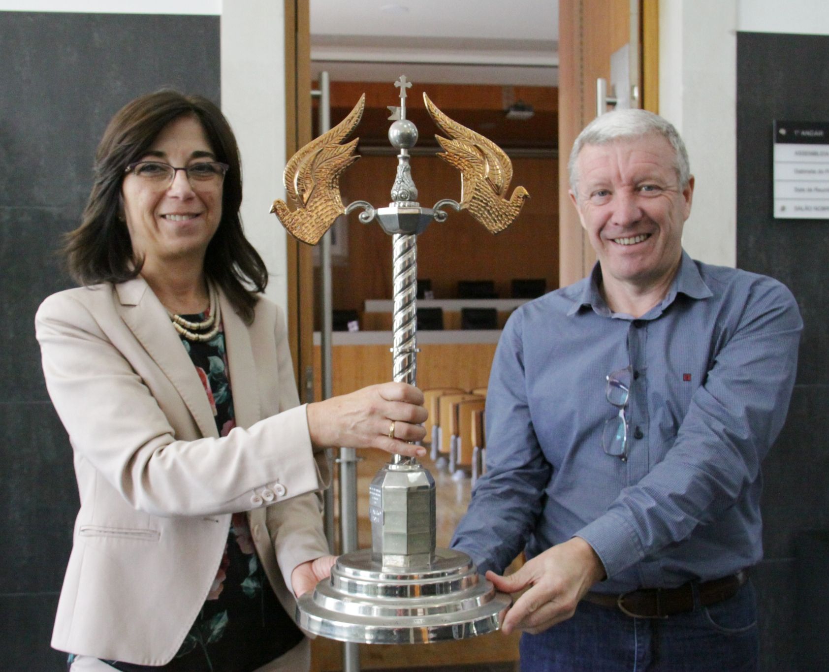 A presidente da Câmara Municipal de Anadia, Maria Teresa Cardoso, recebeu, no passado dia 8 de outubro, das mãos do presidente da Associação Columbófila do Distrito de Aveiro (ACD Aveiro), António Silva, o troféu que simboliza a “passagem de testemunho” para a realização, em Anadia, da 47.ª Exposição Nacional do Pombo-Correio em 2020.