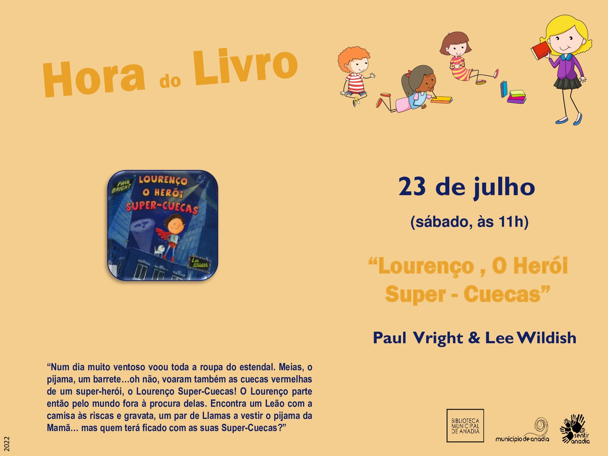 A “Hora do Livro”, iniciativa da Biblioteca Municipal de Anadia para os leitores mais jovens, apresenta-nos o livro “Lourenço, O Herói Super – Cuecas”. “Num dia muito ventoso voou toda a roupa do estendal. Meias, o pijama, um barrete…oh não, voaram também as cuecas vermelhas de um super-herói, o Lourenço Super-Cuecas! O Lourenço parte então pelo mundo fora à procura delas. Encontra um Leão com a camisa às riscas e gravata, um par de Llamas a vestir o pijama da Mamã… mas quem terá ficado com as suas Super-Cuecas?”