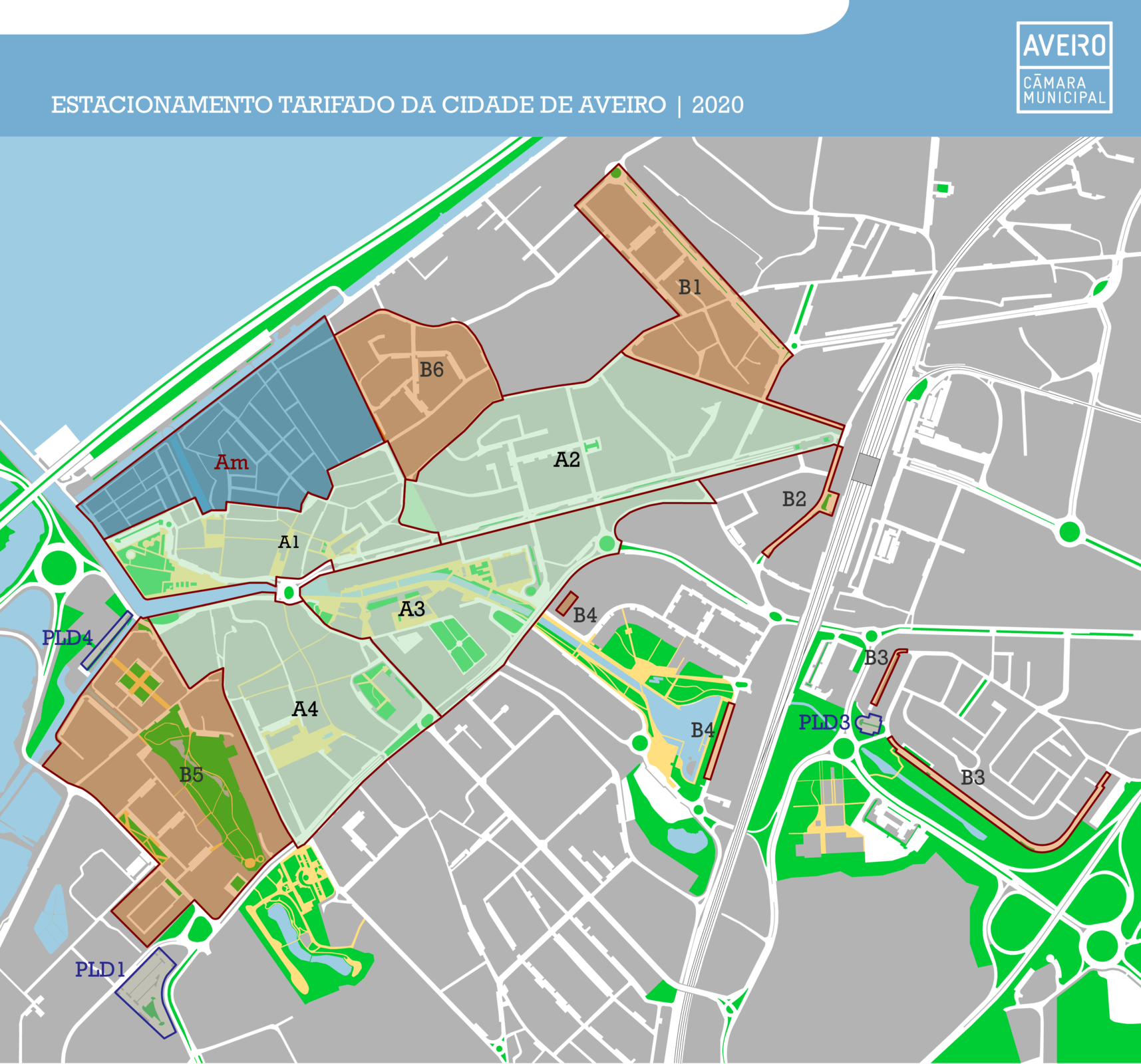 área de conteúdos (não partilhada)A Câmara Municipal de Aveiro anuncia as principais alterações ao estacionamento em Aveiro para 2020, com especial destaque para a zona central da Cidade, (conforme mapa em anexo).