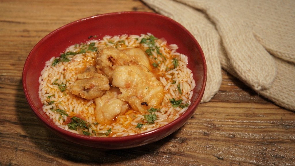 Nestas duras campanhas de pesca, que chegavam a demorar seis meses, os cozinheiros atenuavam o cansaço e as saudades da família com refeições reconfortantes, como a chora, uma sopa preparada com cabeças de bacalhau frescas, e o feijão assado, entre outros pratos que incluíam as partes então consideradas "menos nobres" do bacalhau - as caras, as línguas, os samos e as espinhas.